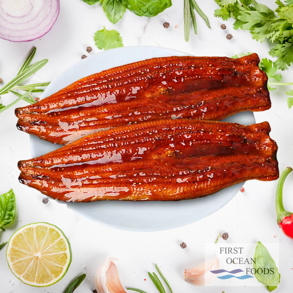 is a popular Japanese dish made from grilled eel (unagi), typically served with a sweet, savory sauce called tare. It is often prepared by broiling the eel fillet, which has been butterflied and grilled over a flame. The resulting dish is both tender and flavorful, with a rich umami taste. The tare sauce is a key component of Unagi Kabayaki and is made from soy sauce, mirin, sugar, and sometimes sake, creating a glossy, caramelized coating on the eel.